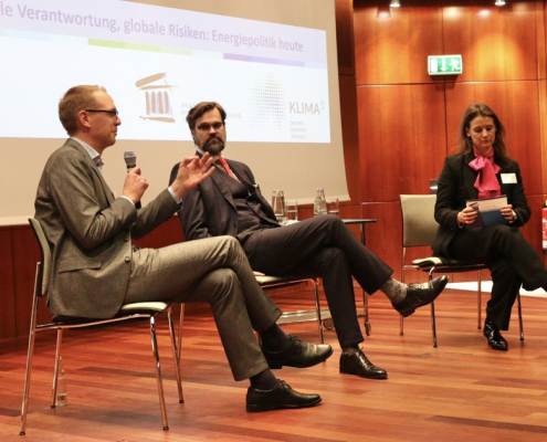 In der anschließenden Podiumsdiskussion mit Frank Sauer und KLIMA³-Geschäftsführer Andreas Weigand lenkte Moderatorin Dr. Giulia Mennillo den Fokus wieder zurück von der globalen Ebene auf die Region. „Unser Energiesystem stützt sich künftig auf einen Mix aus Erneuerbaren Energien, vor allem Windkraft und Fotovoltaik, sowie einer zunehmenden Elektrifizierung von Wärme, z. B. Wärmepumpen, und der Mobilität auf der Lastseite“, erläuterte Weigand. Experten arbeiteten bereits heute an Lösungen, um Netze zukunftsfähig und dezentral zu machen. „Das ist ein fundamentaler Wandel des Systems“, so Weigand.